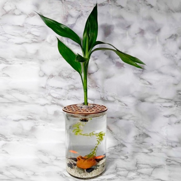 Nano Acuario de vidrio 16x10 cm. bambú de la suerte