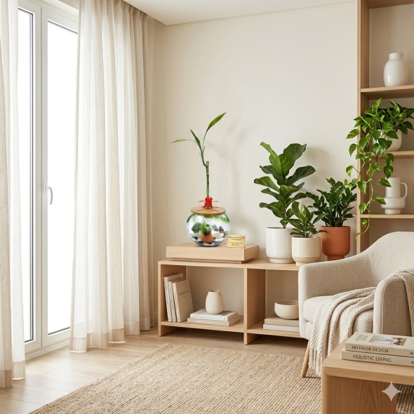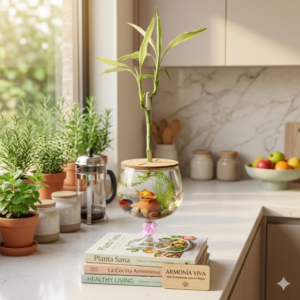 Pecera redonda de vidrio 18x13 cm. con bambú