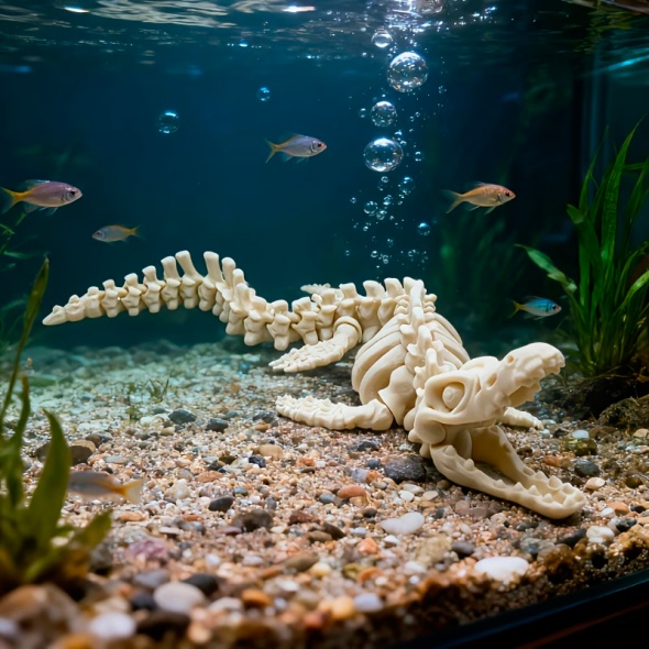 Adorno de esqueleto de plesiosaurio, decoración para acuario, decoración de paisaje para acuario, adorno con temática de esqueleto, suministros para acuario